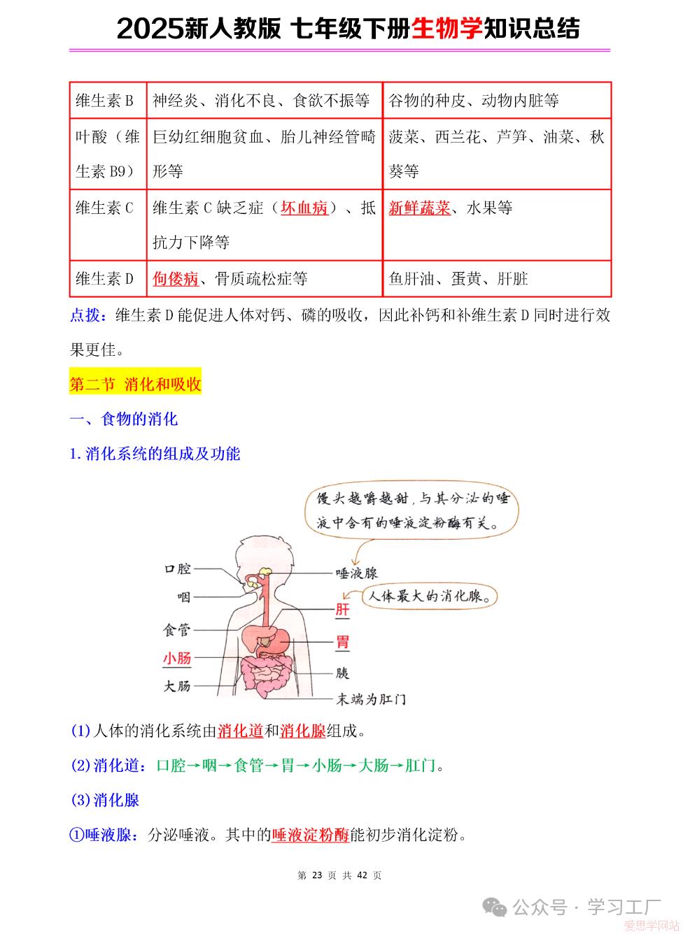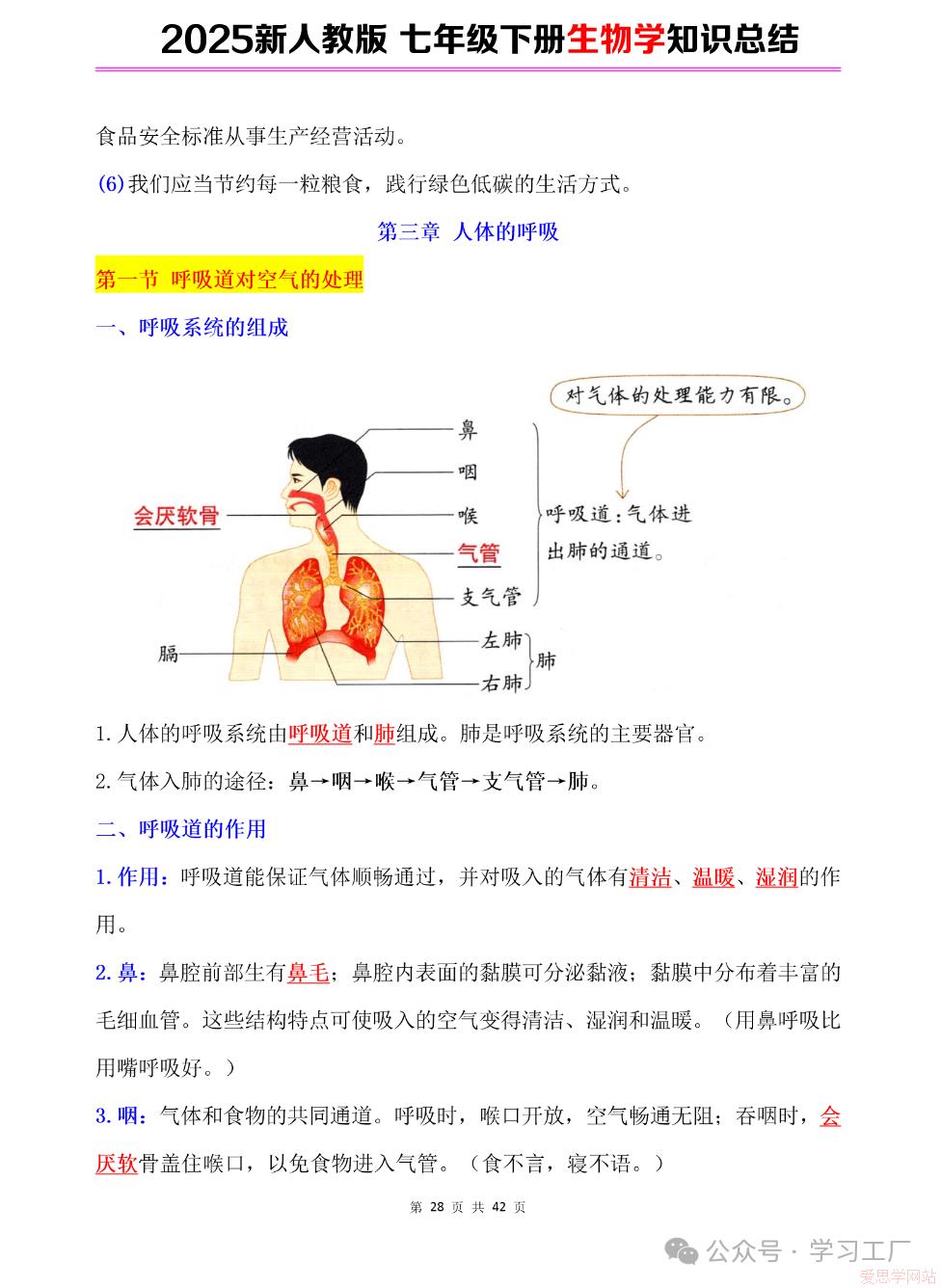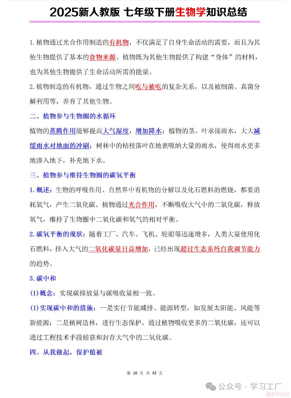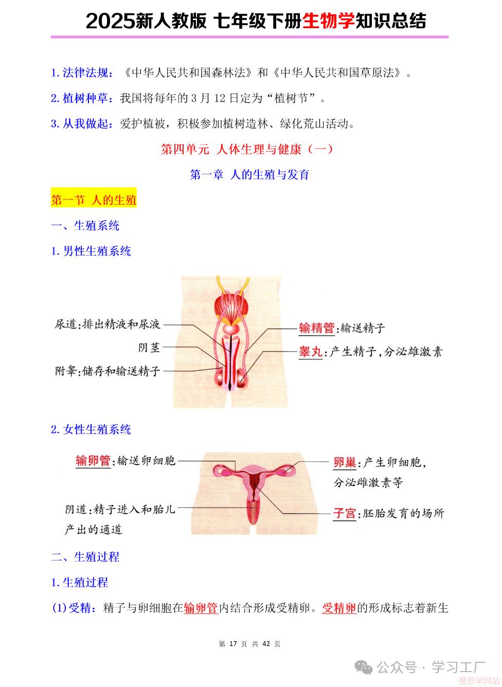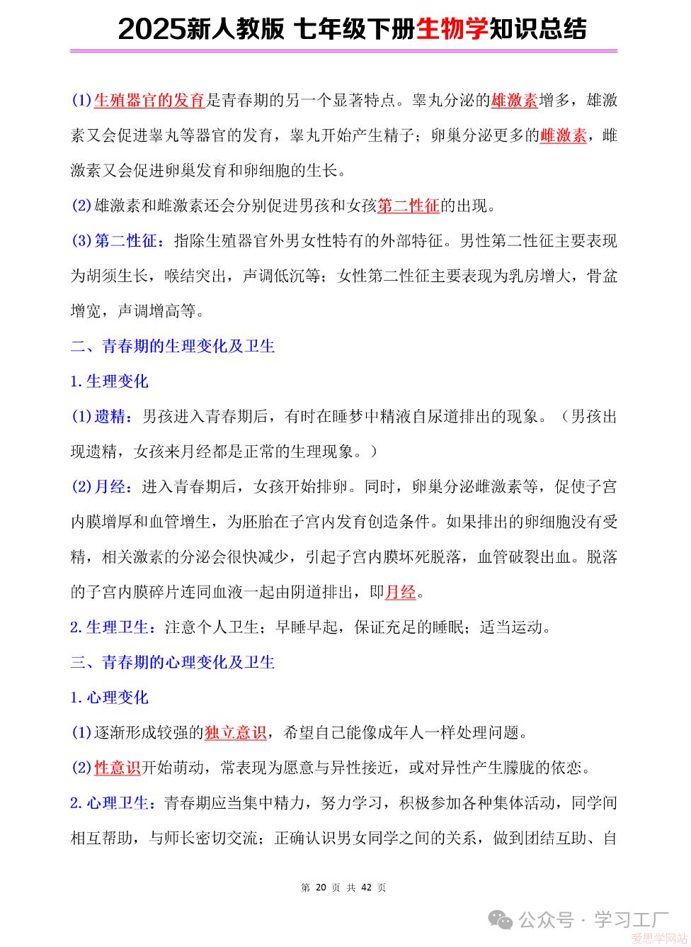 2025七年级下册【生物学】复习归纳总结