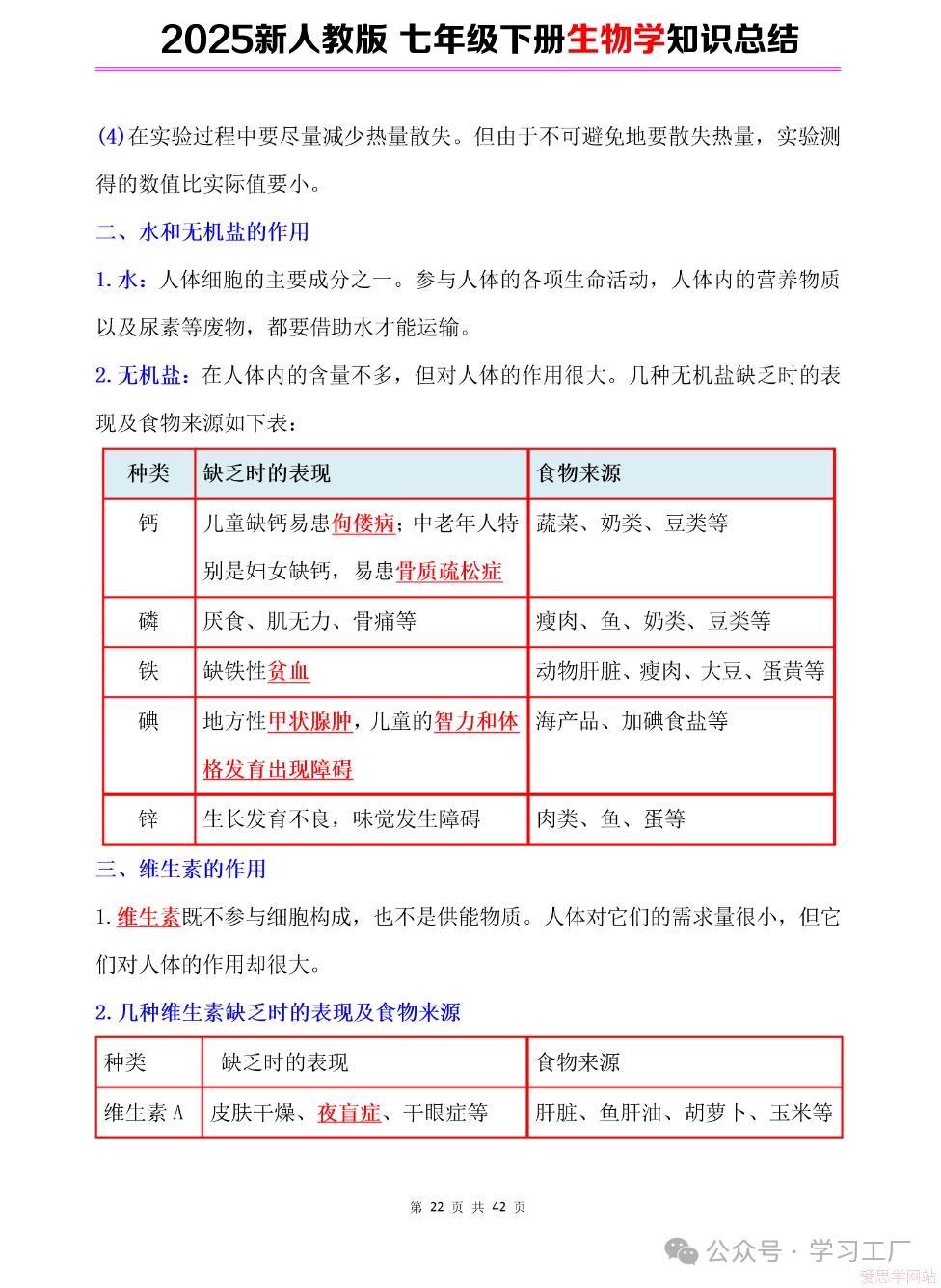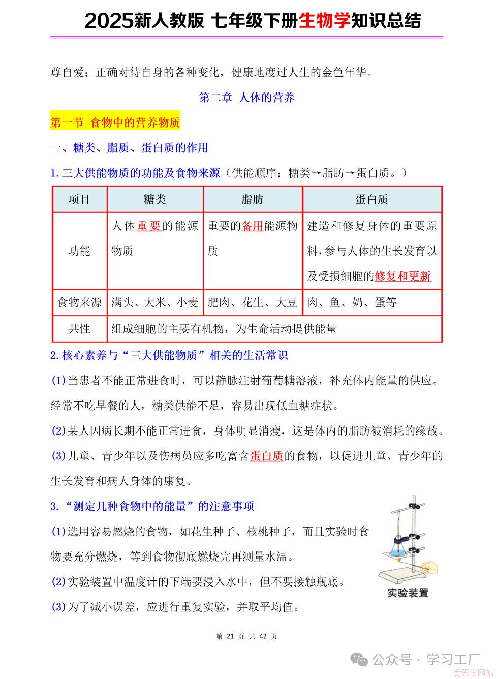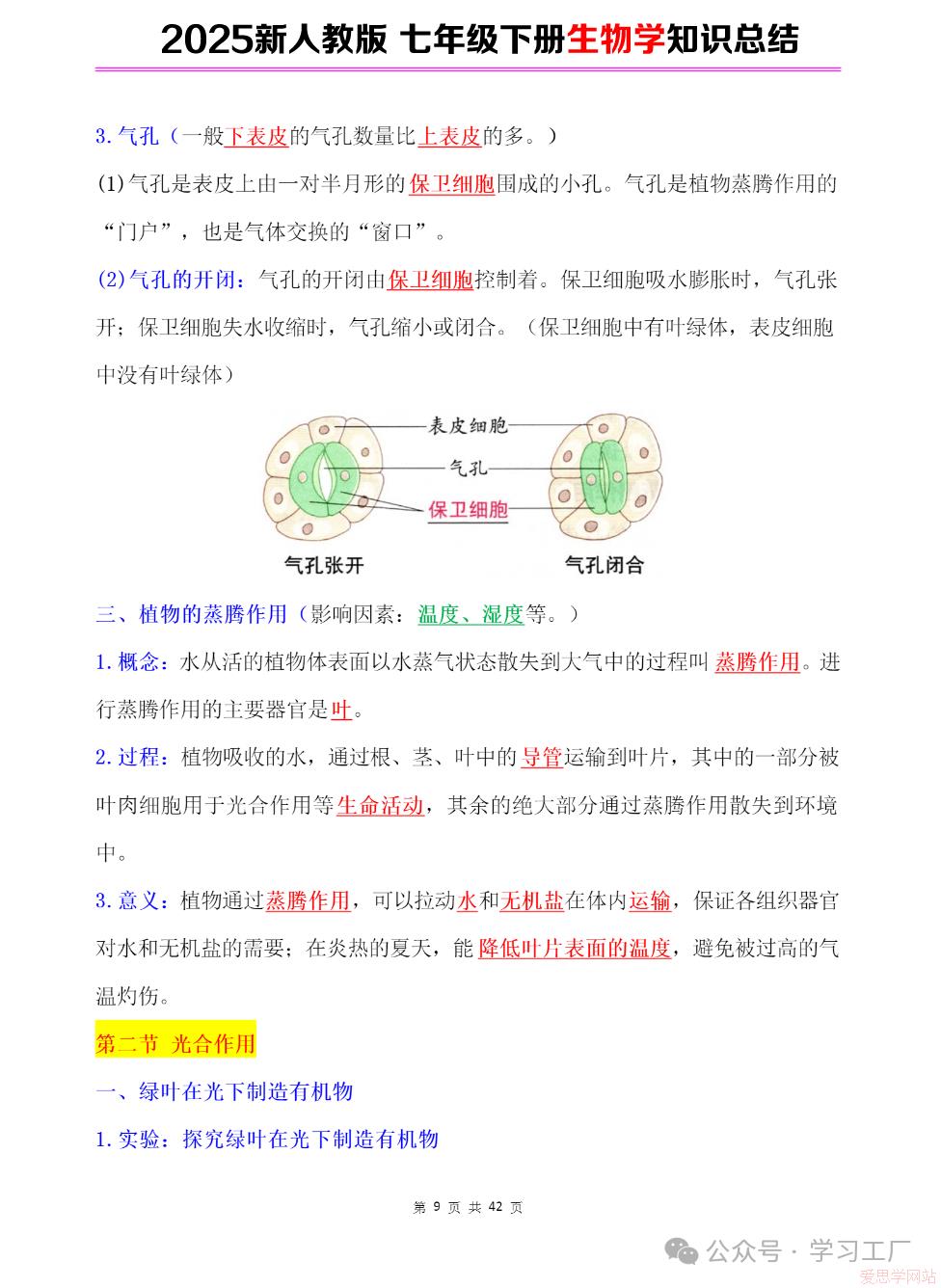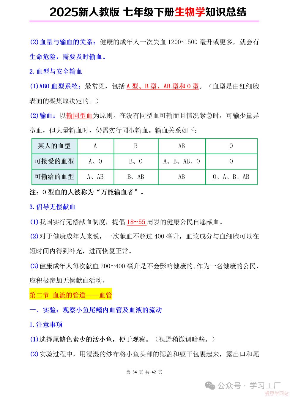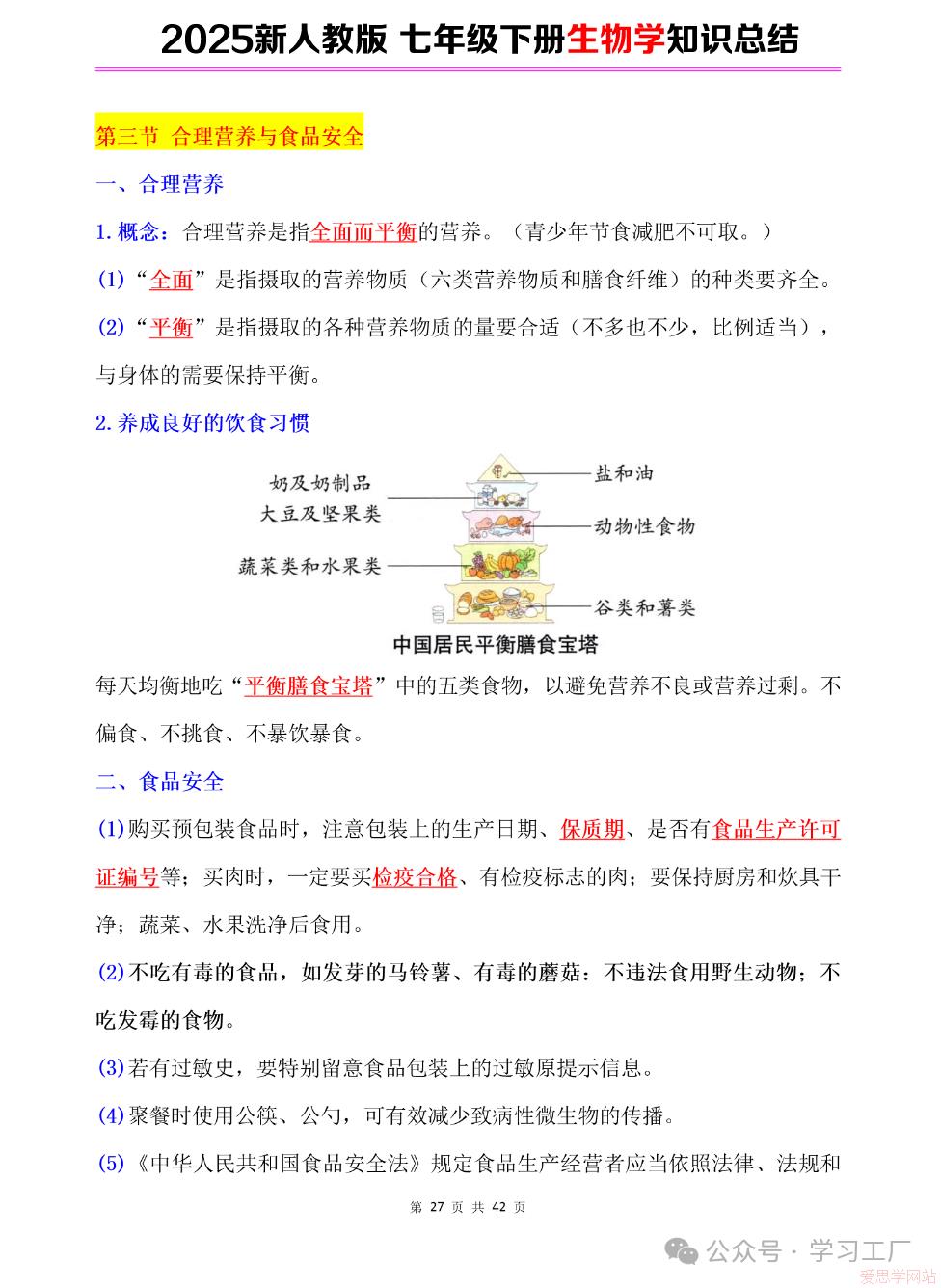 2025七年级下册【生物学】复习归纳总结