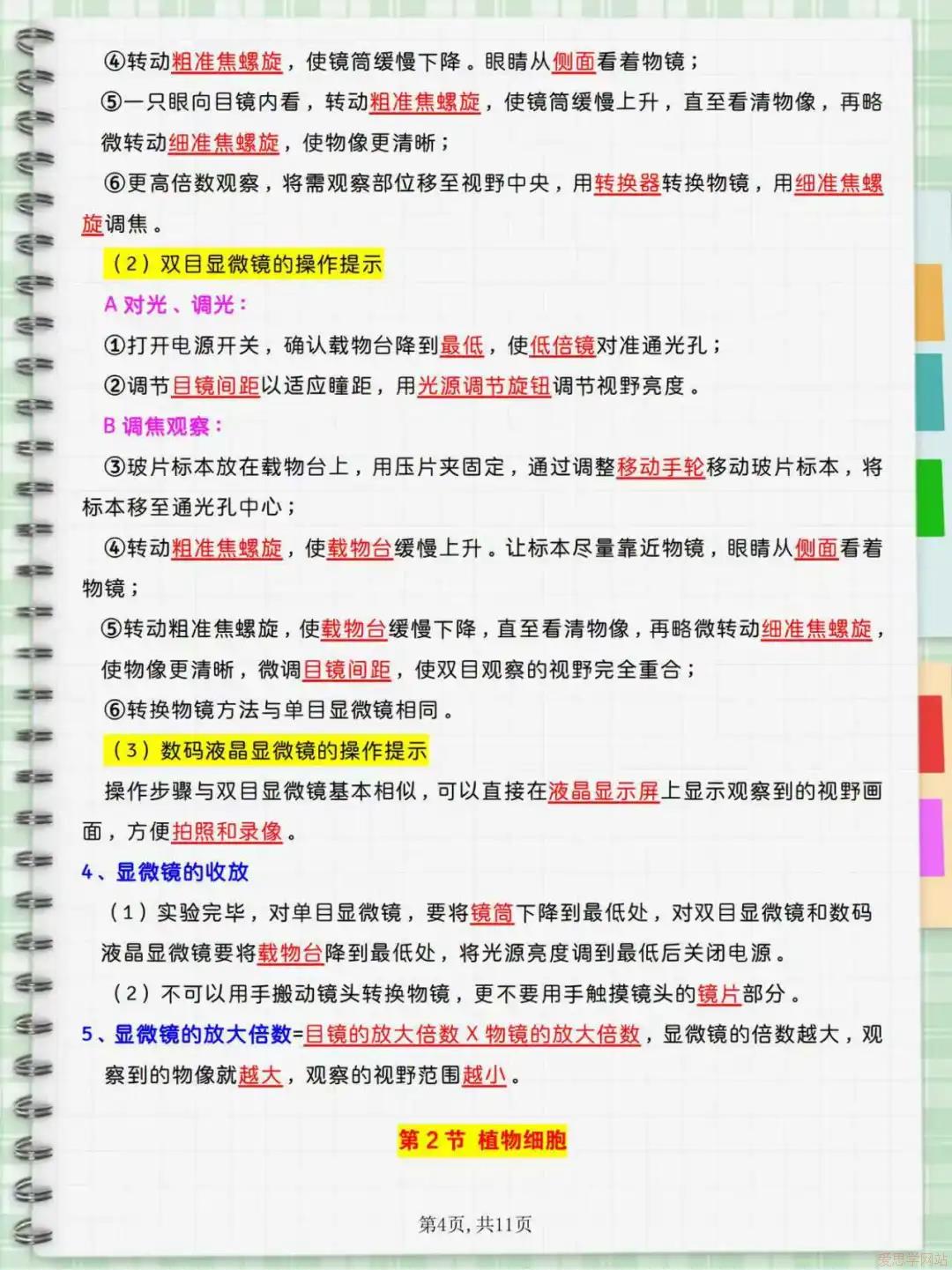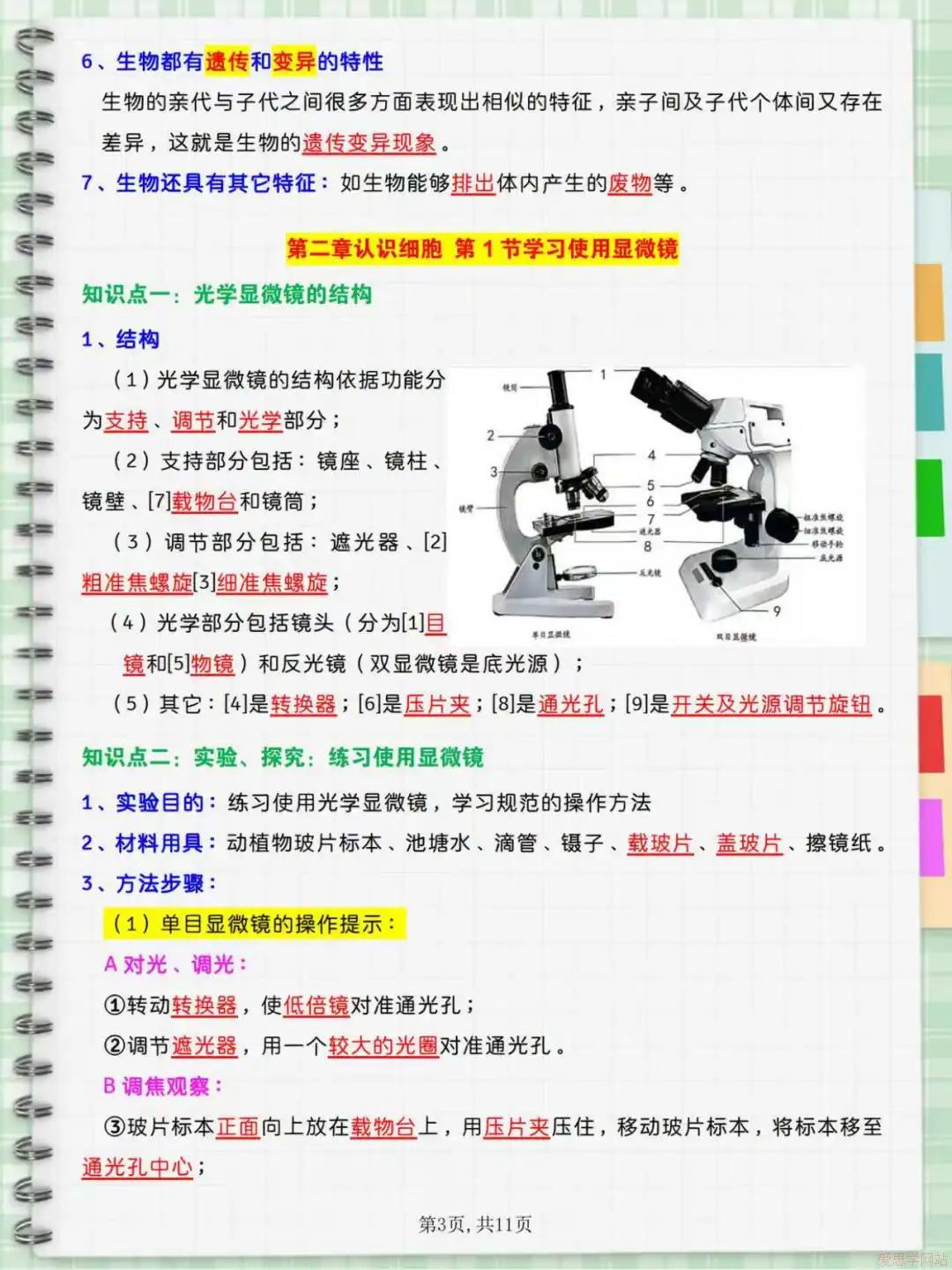 第二单元:聚焦微观的“生命结构观”。 这是全书的基石。生命活动的基本单位是细胞。熟练操作显微镜是必备技能。必须掌握动植物细胞的结构与功能:二者共有细胞膜(控制进出)、细胞质、细胞核(控制中心)和线粒体(动力车间);植物细胞特有细胞壁、叶绿体(能量转换)和液泡。多细胞生物通过细胞分裂增加数目,通过细胞分化形成不同的组织,进而形成器官和系统(动物),最终构成统一整体。该单元揭示了生物体构建的共同规律。
