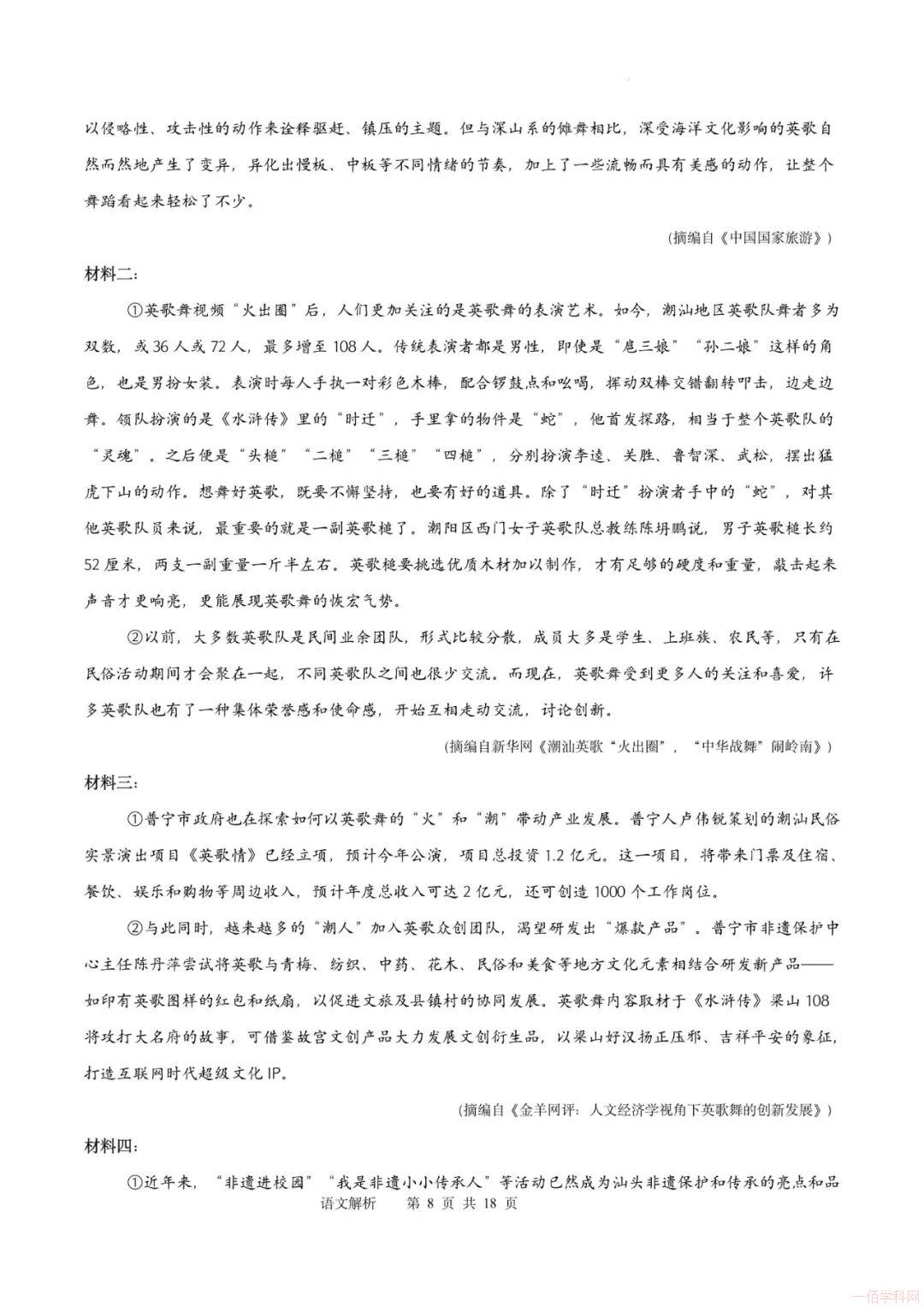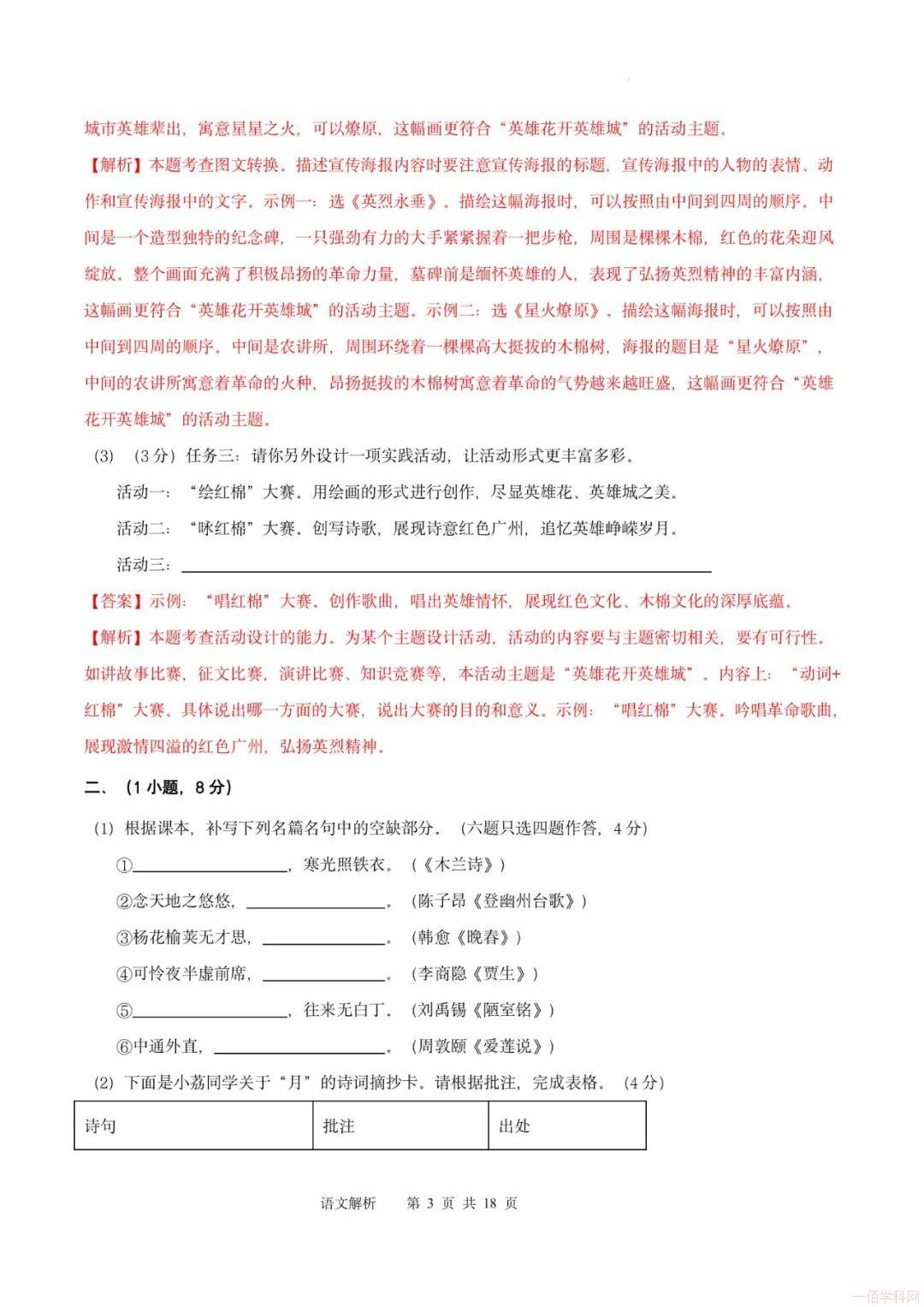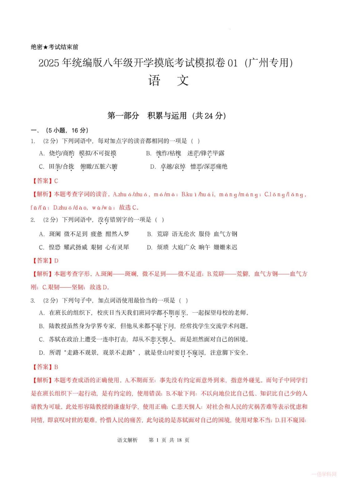 2025-2026学年统编版八年级上学期开学语文摸底考试模拟卷01(广州专用)(解析版)