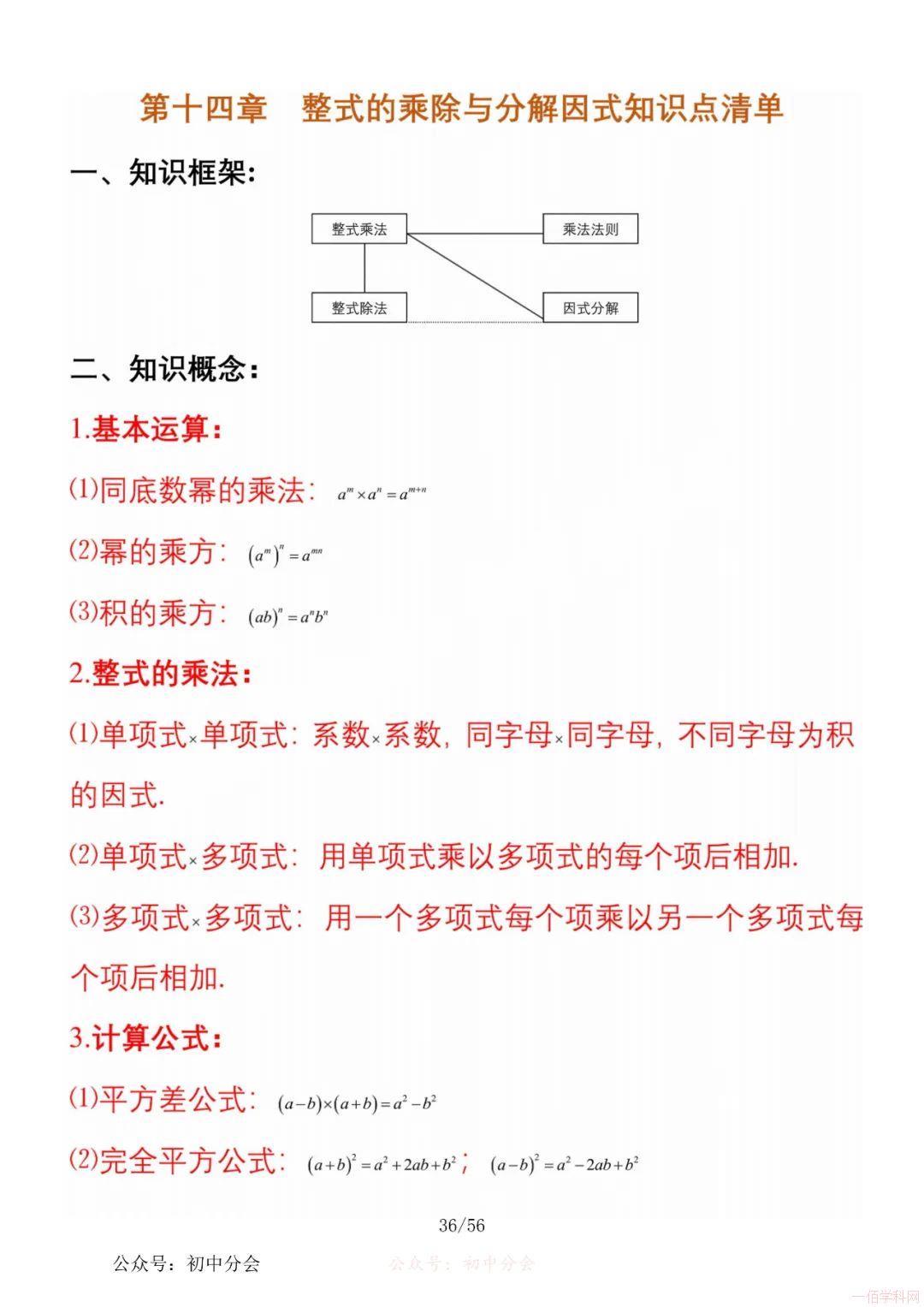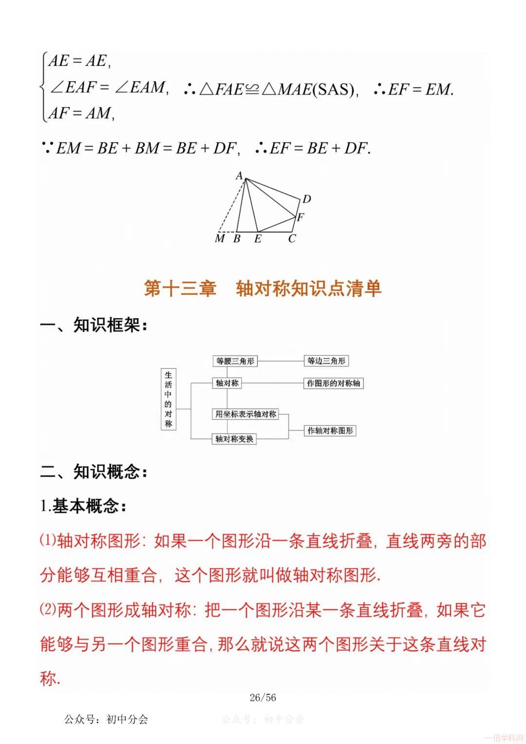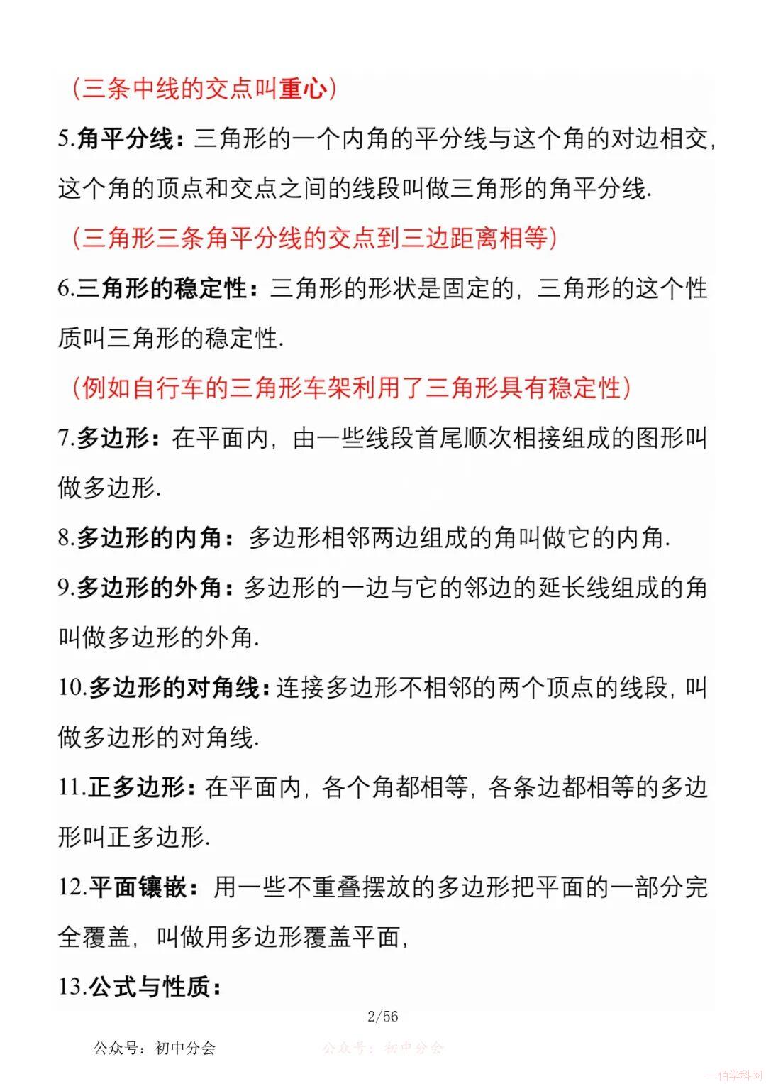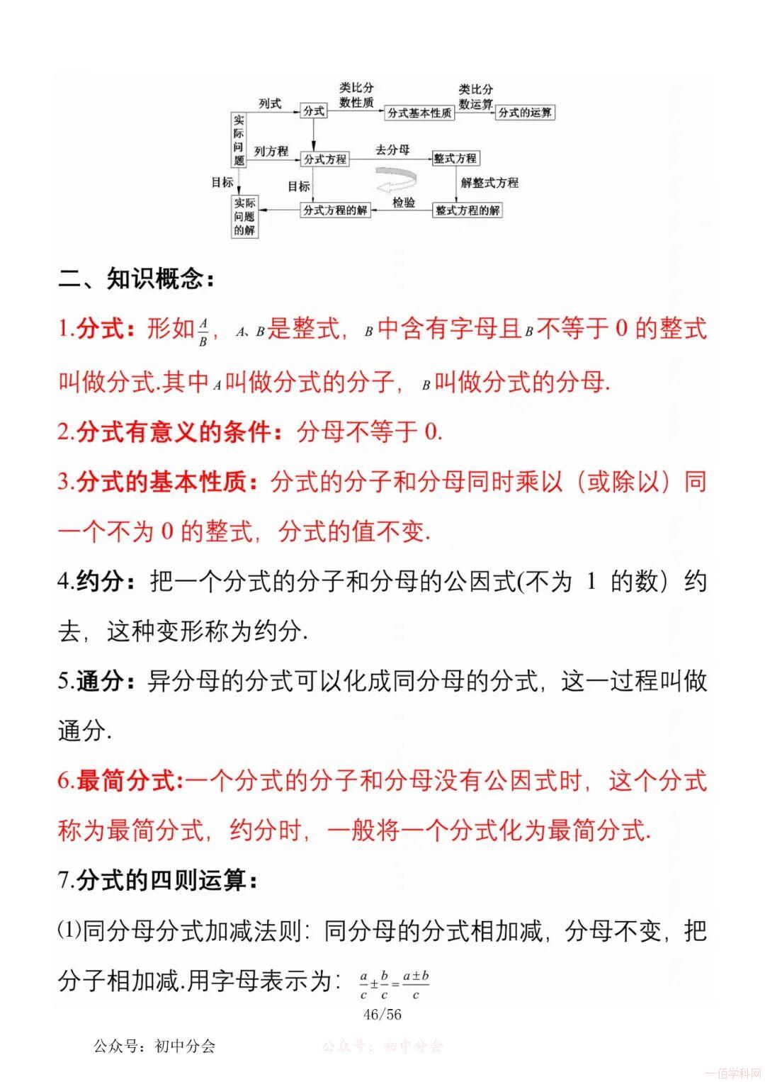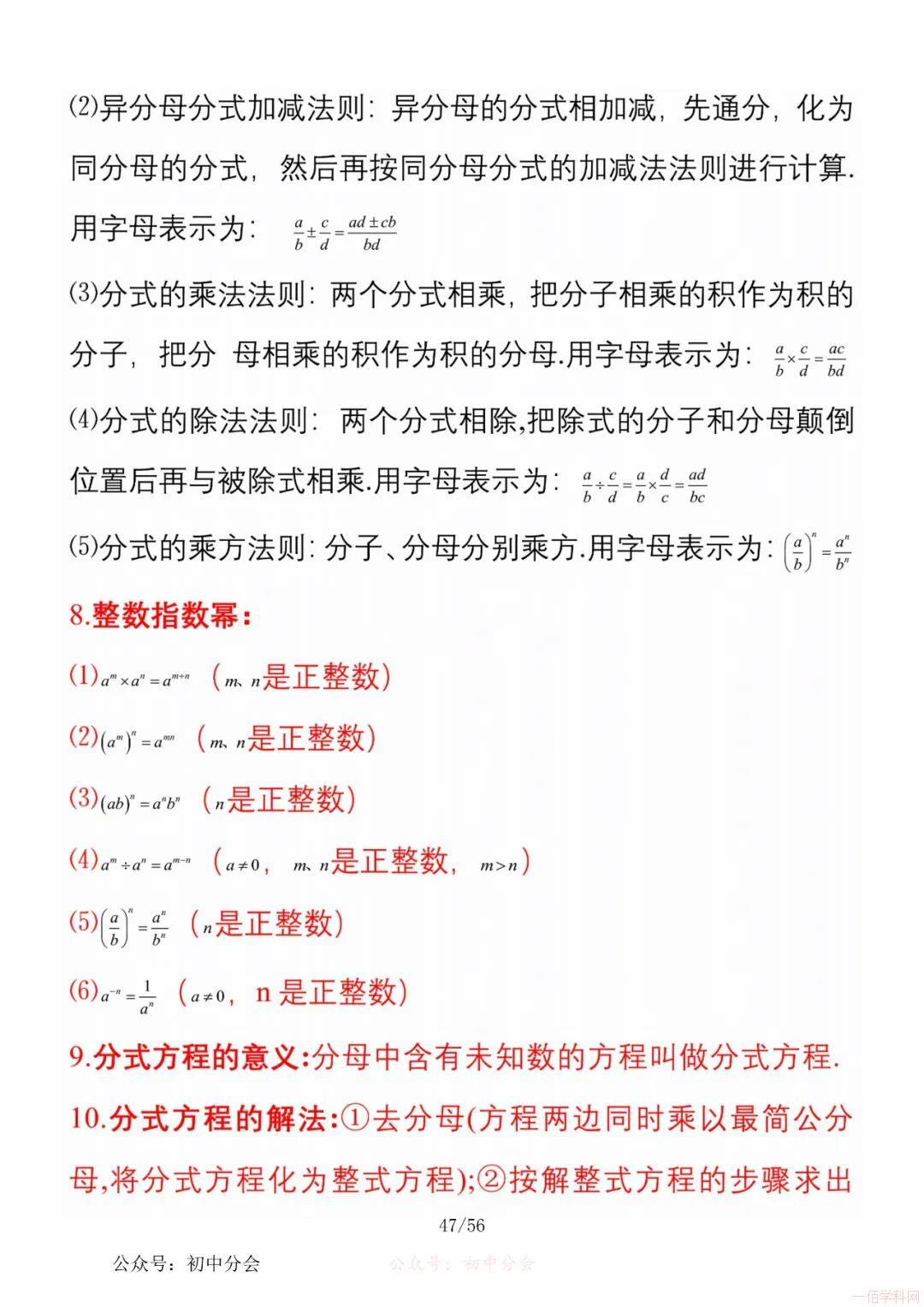数学八年级上册分单元知识点总结,共56页,高清无水印,抓准考题及知识点背诵,师生复习参考使用!
