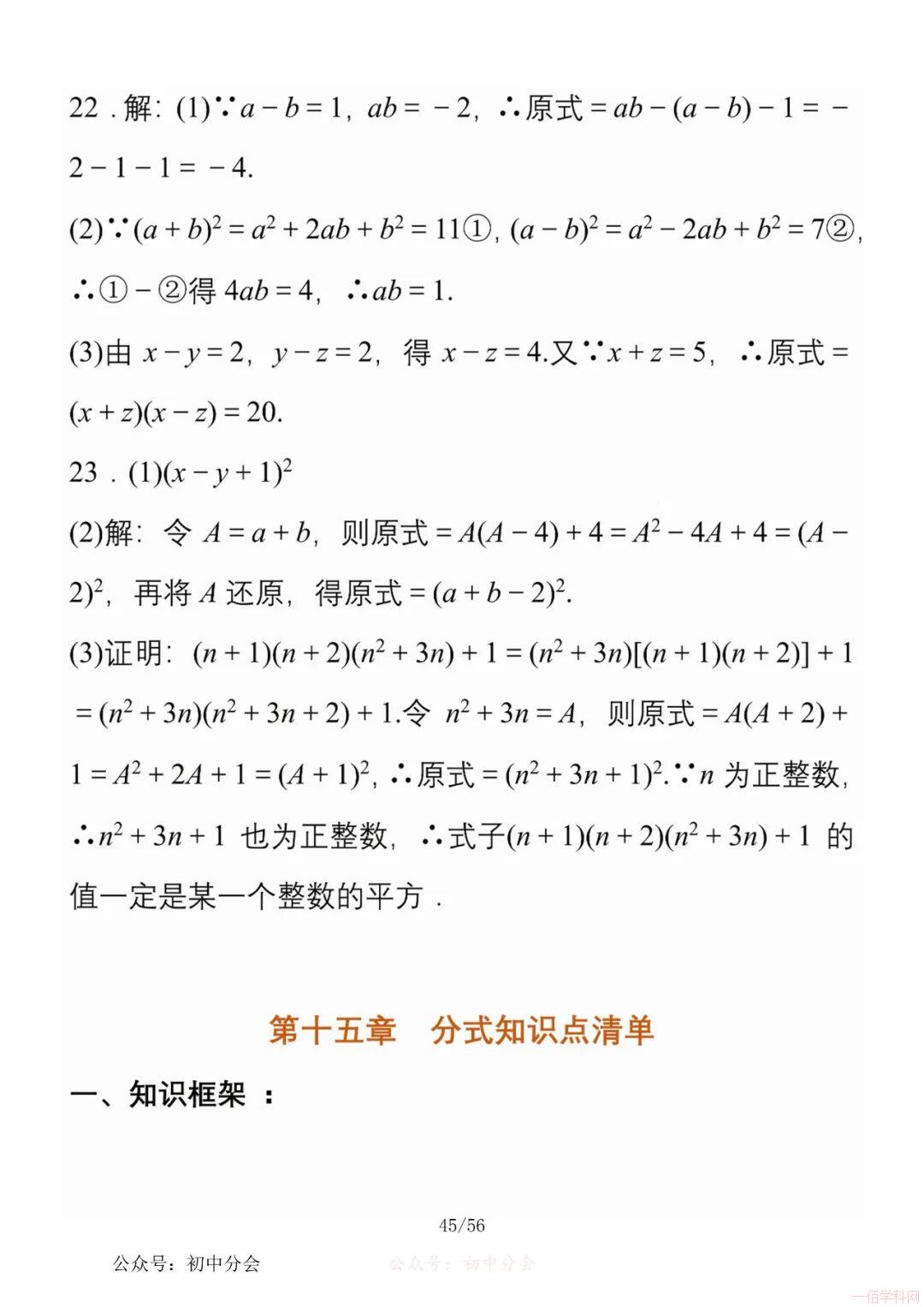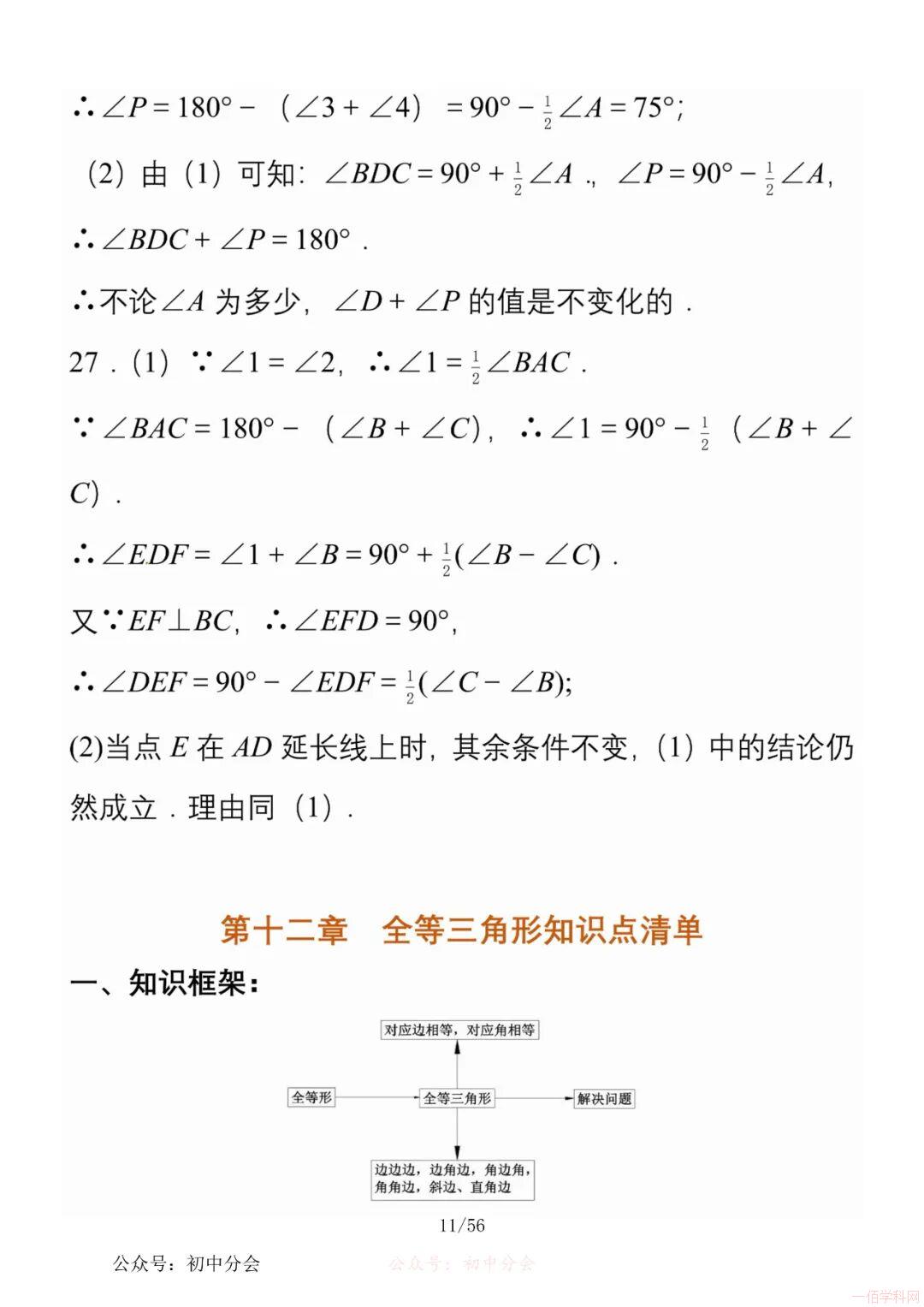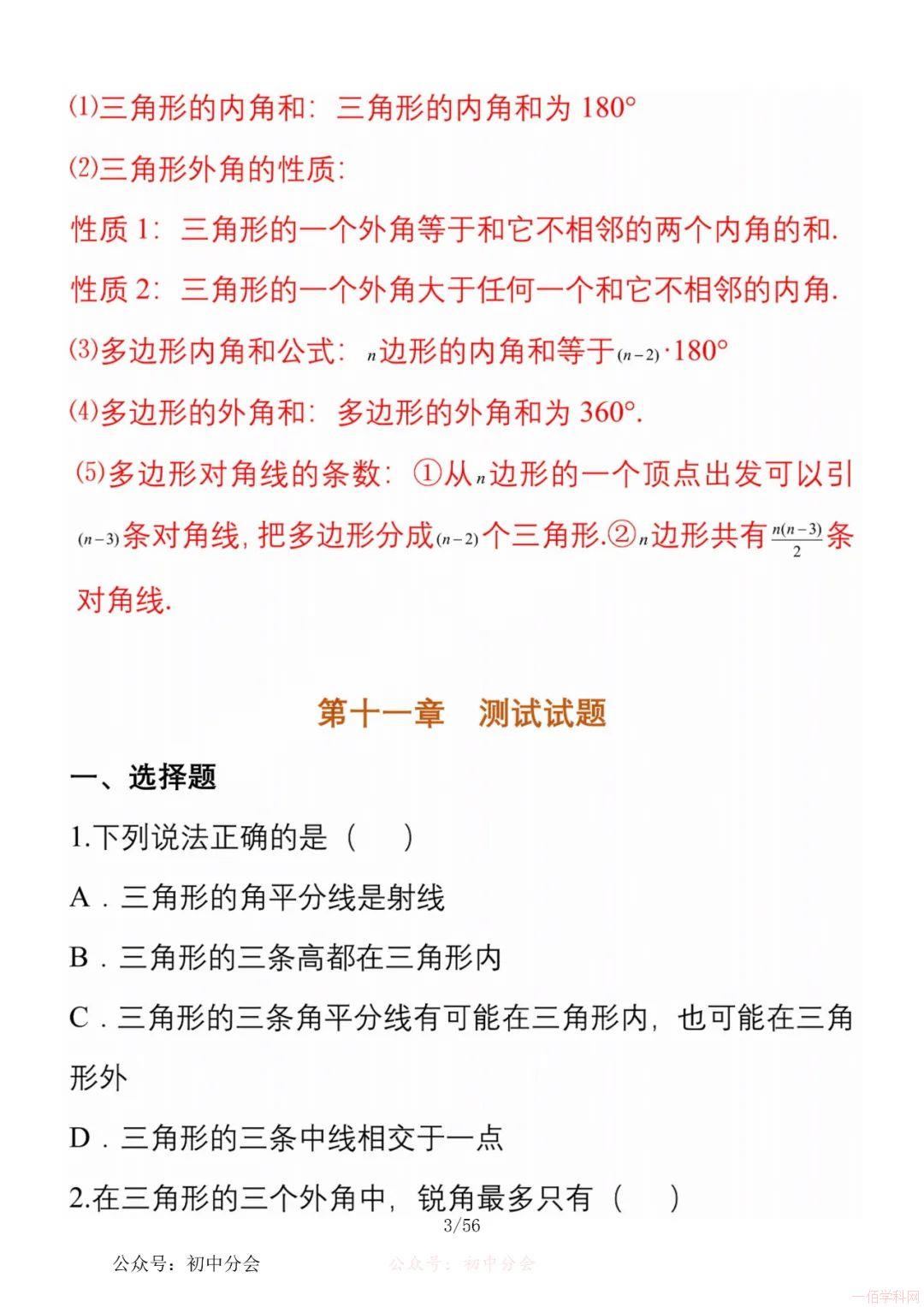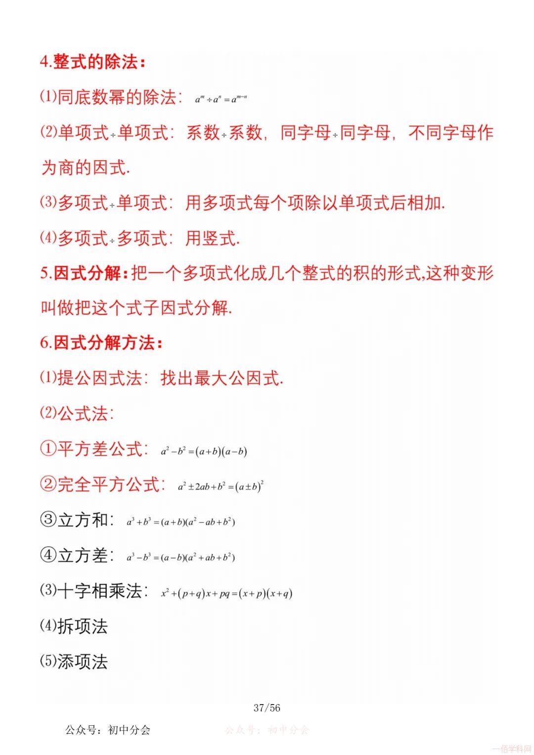 数学八年级上册分单元知识点总结,共56页,高清无水印,抓准考题及知识点背诵,师生复习参考使用!