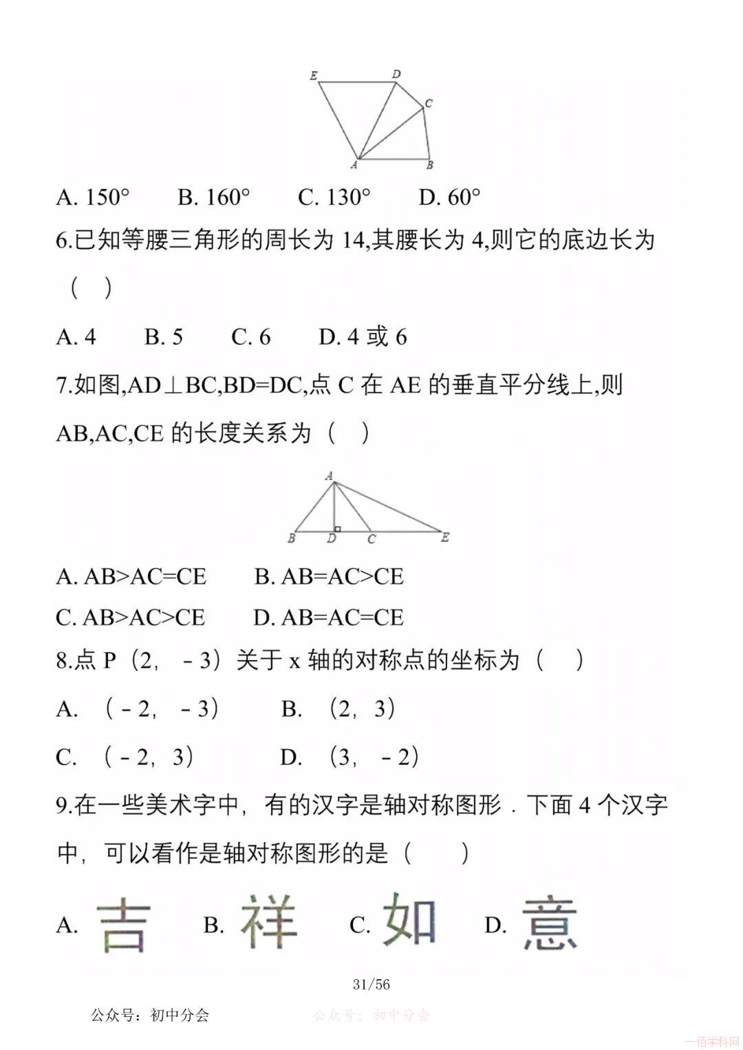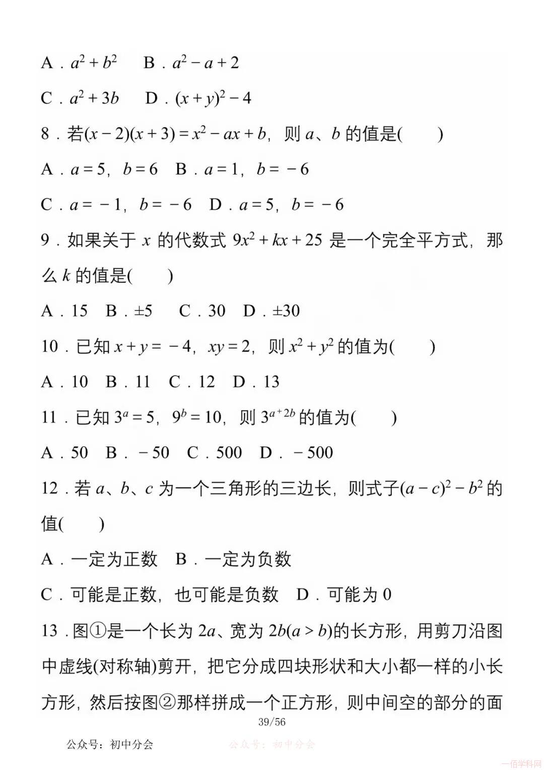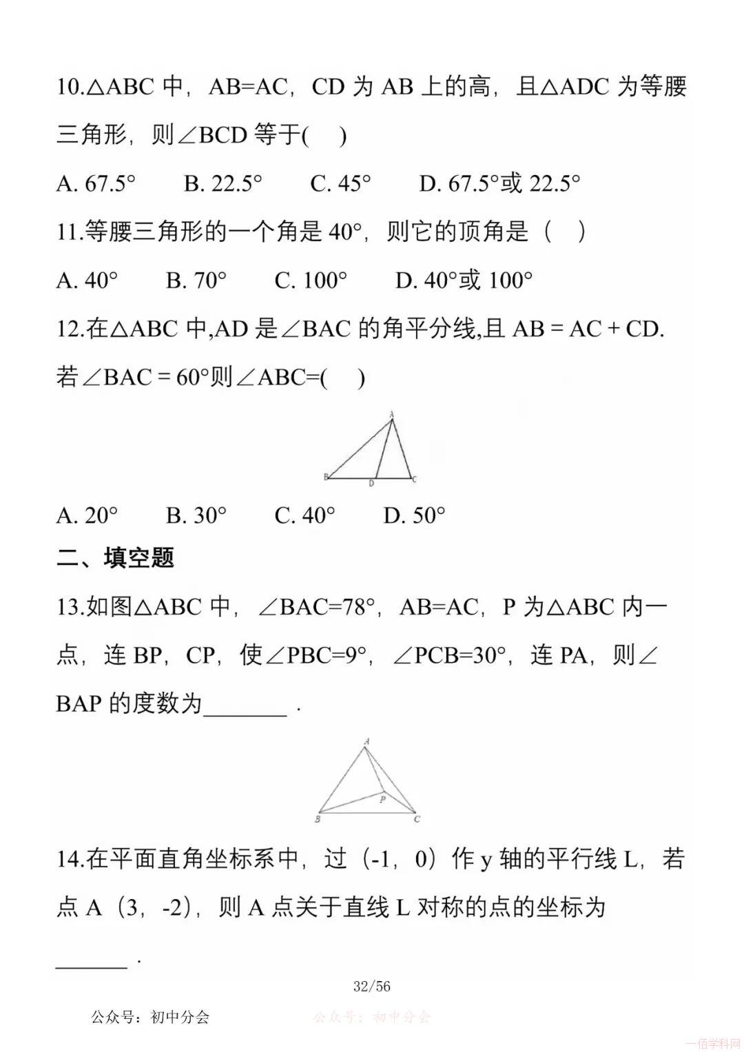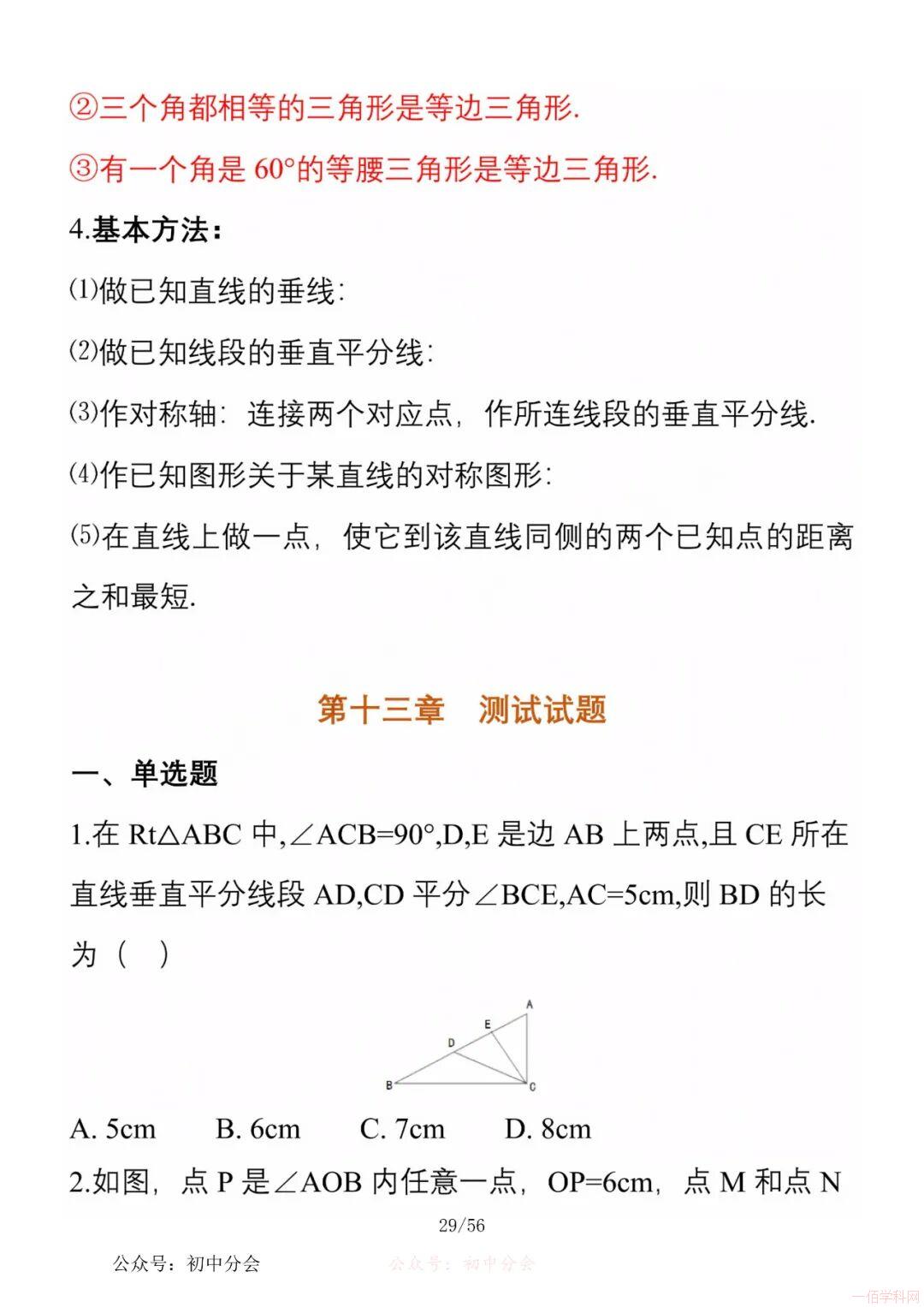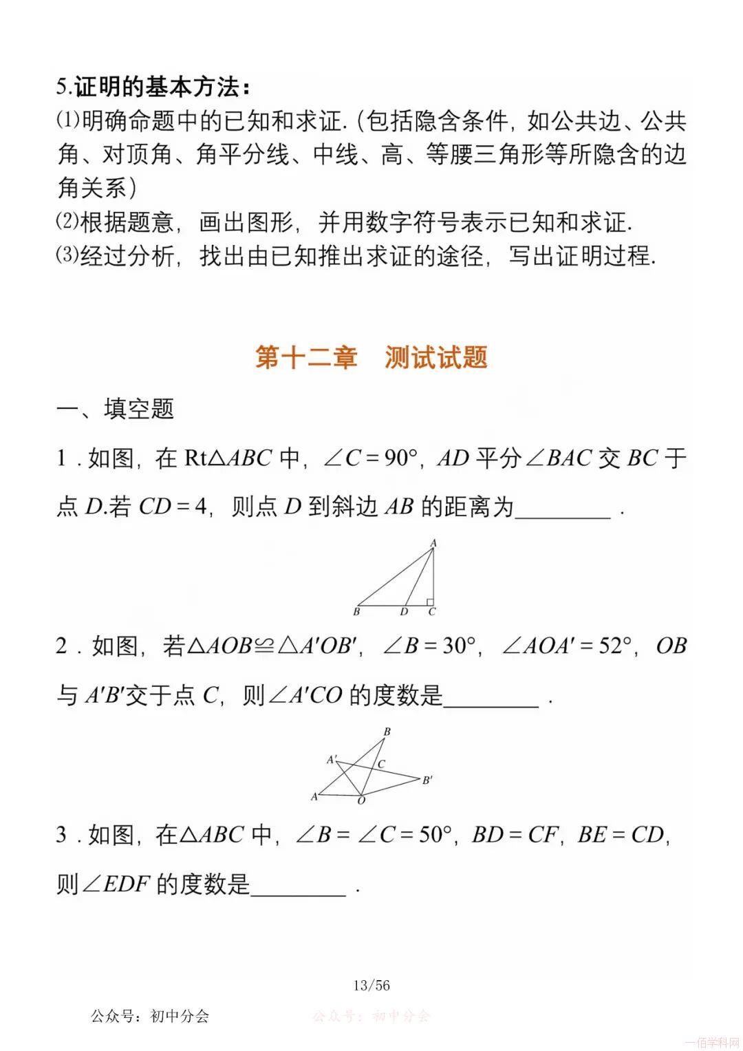 数学八年级上册分单元知识点总结,共56页,高清无水印,抓准考题及知识点背诵,师生复习参考使用!