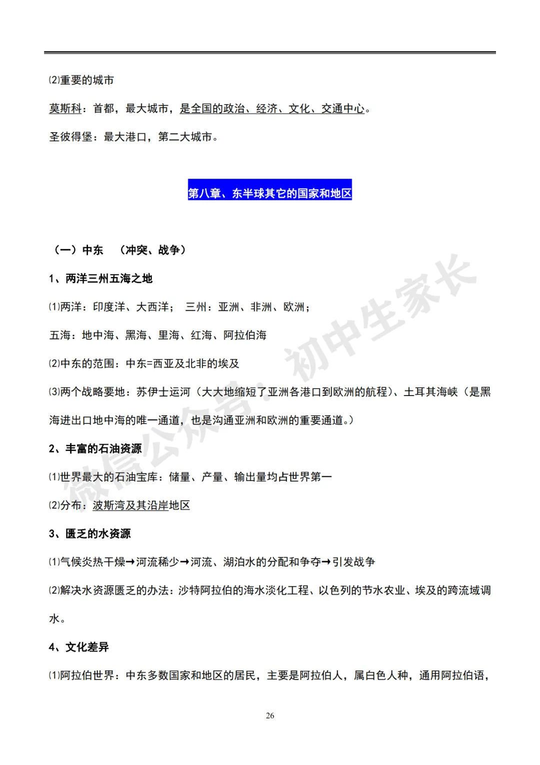 今天老师给大家整理了:初中地理会考知识总结(全四册)。
