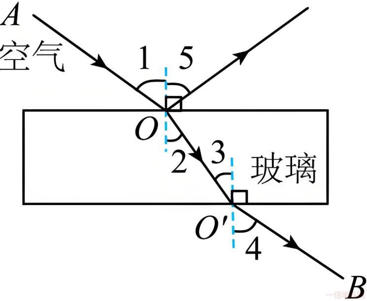 虽然,大家现在已经在学习力的部分内容,但是本文,我们还是来分析光线射到玻璃砖后的光线画法,为期中测试助力情况1——直射 直接透过玻璃砖,从另一面射出,同时在表面发生反射,不存在折射现象