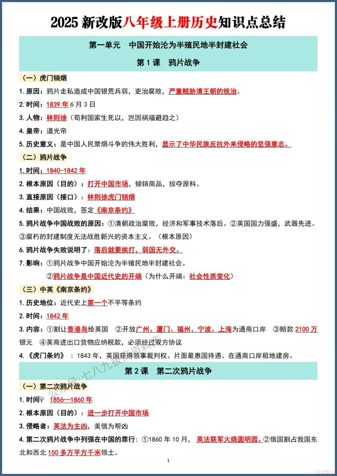 2025秋八年级历史上册(人教版)全册知识点总结、重点知识归纳?电子可打印,家长和老师备上,让孩子读记背诵~