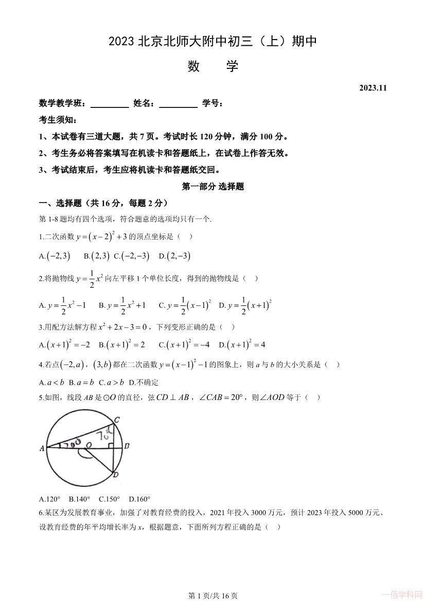 2025-10-302023年北京海淀初三上册期中物理试卷(附答案)