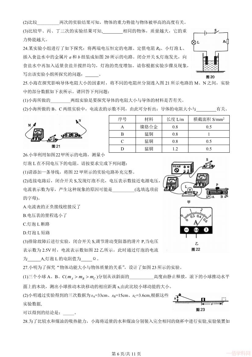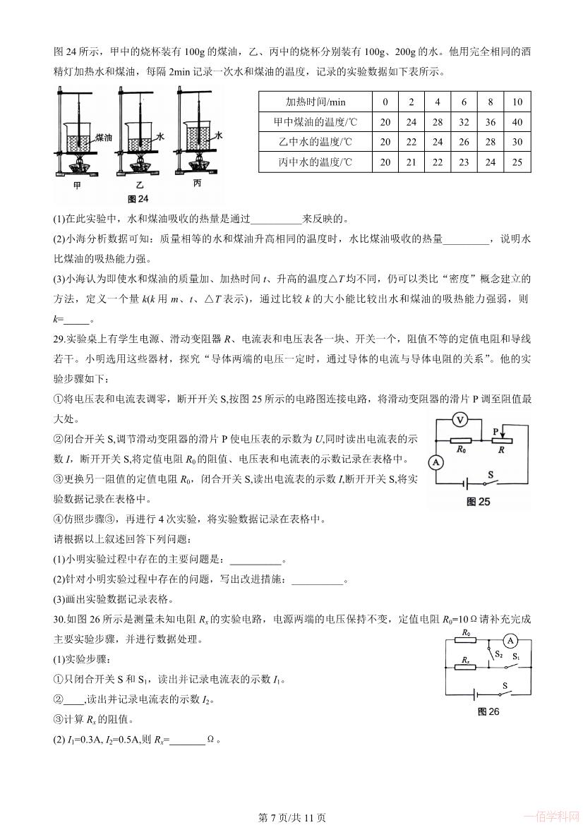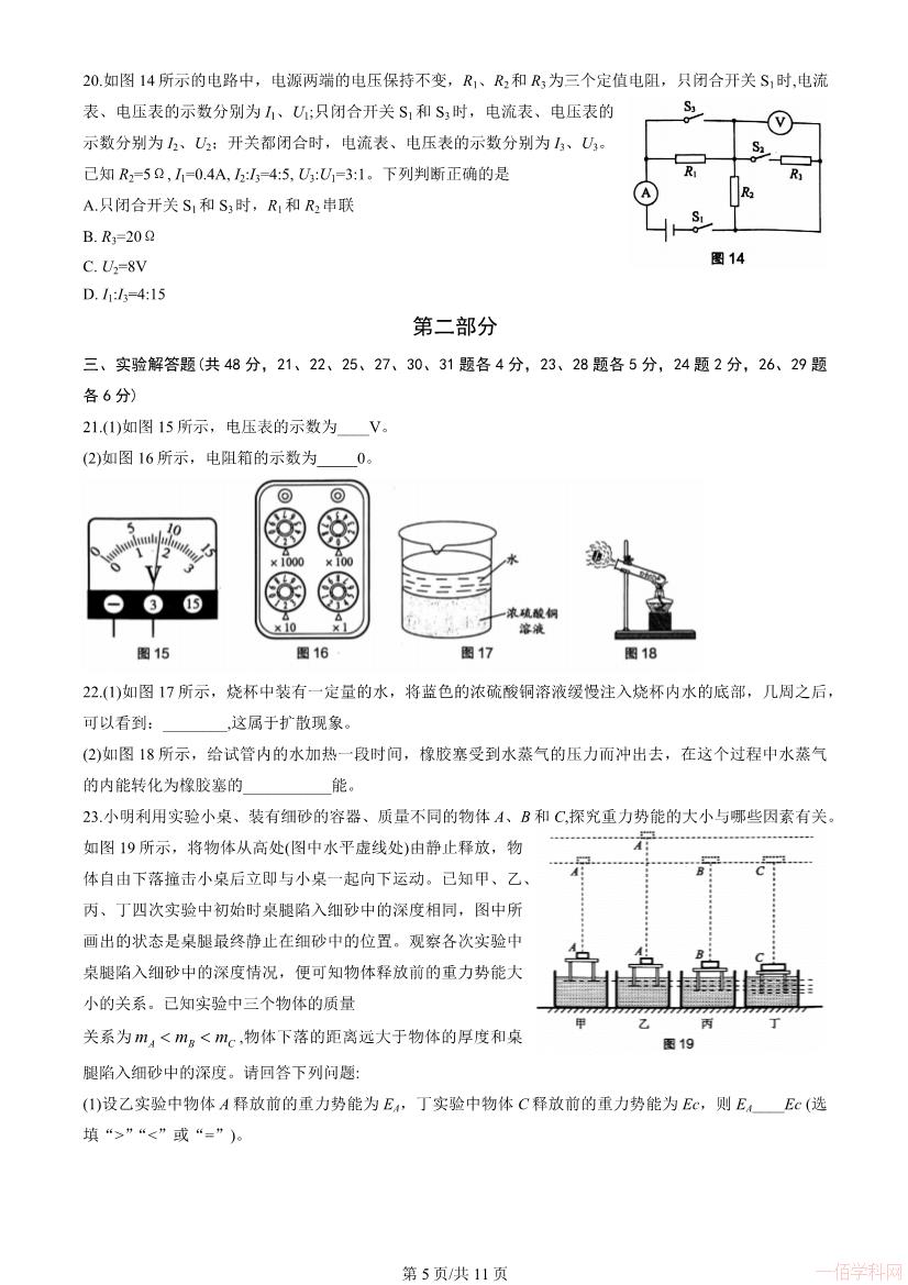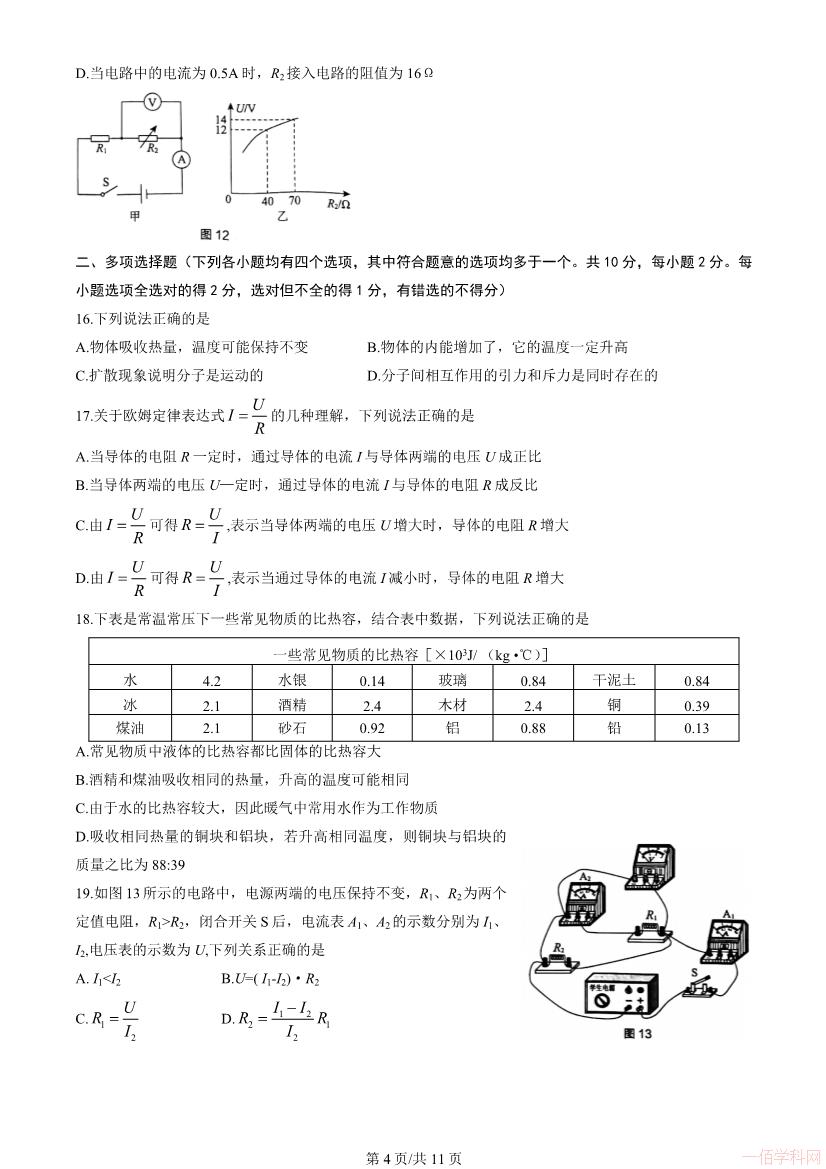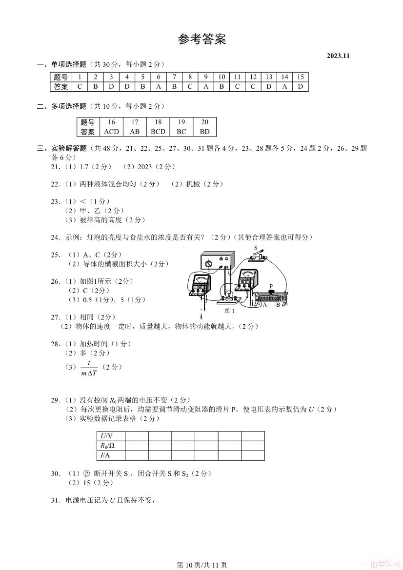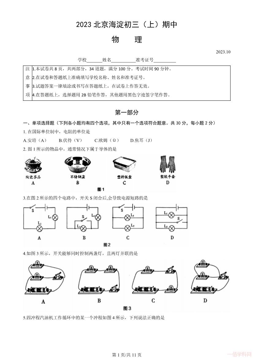 2025-10-302023北京海淀初三物理上册期末物理(有答案)